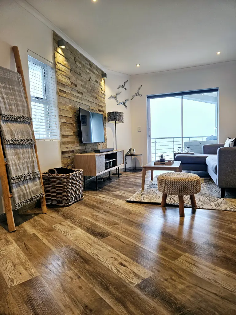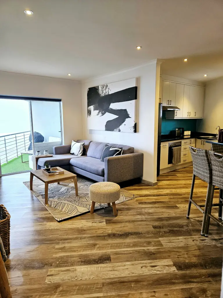 - The open-plan layout features a modern kitchen with high-end fittings that flows seamlessly into an inviting living and dining area with a Balcony with views towards the iconic Robben Island