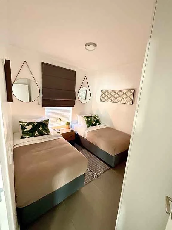 - The two designer bedrooms are exceptionally comfortable with the main bedroom opening onto its own private balcony.